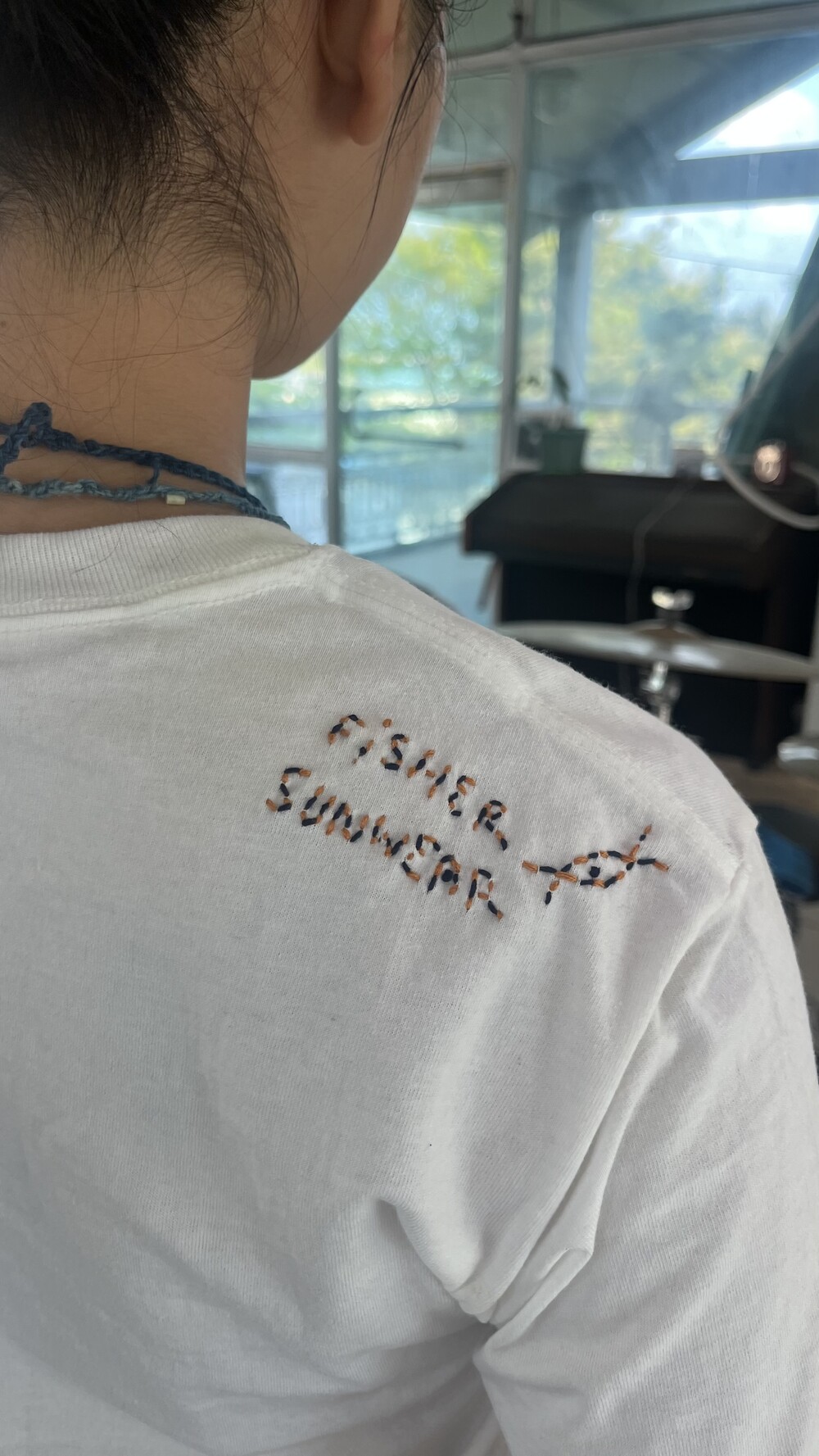 새 상품이지만 작은 얼룩이 있어 판매하지 못하던 제품에 자수를 넣었습니다.